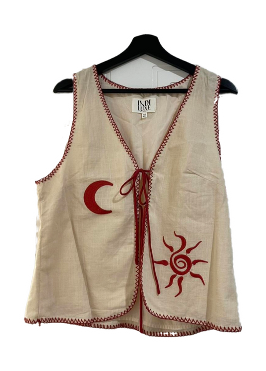 Sun & Moon Boho Embroidered Vest - preloved