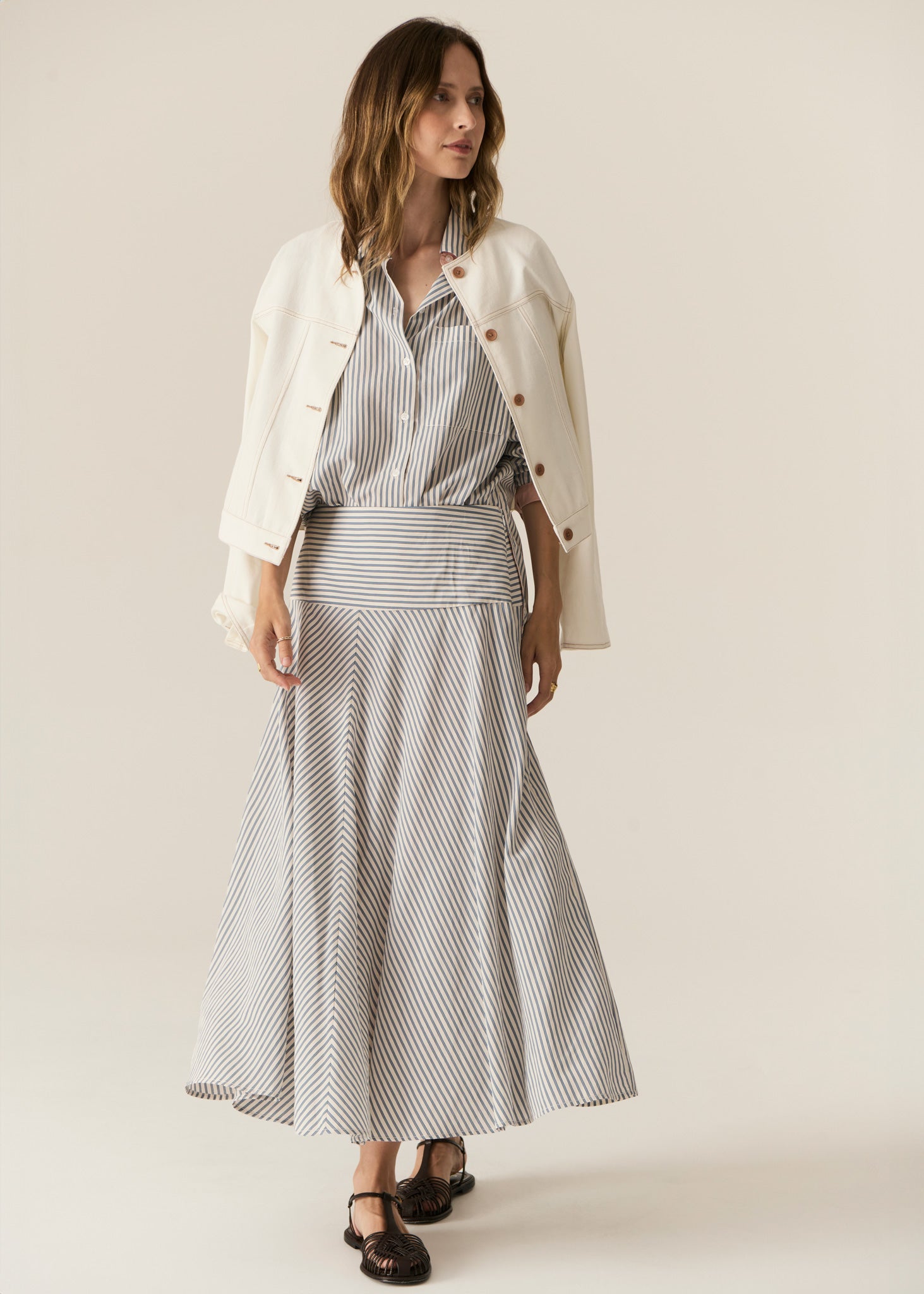 The Carsen Denim Jacket is an elevated take on a classic denim jacket. With refined topstitch detailing and a collarless design, we think this just may be the perfect layering piece for Spring.