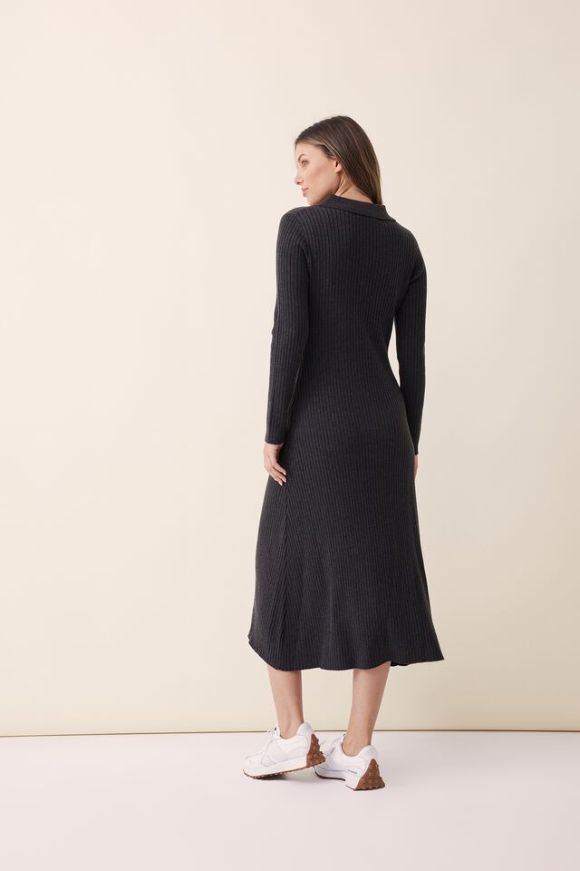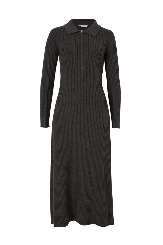 Elevate your everyday with the sophisticated Ceres Life Charcoal Knit A-Line Dress. Crafted with the finest recycled fibre blend from post-consumer waste, the soft rib design gently skims over the hips, finishing off with a floating a-line hem. Elegant metal zippers at the collar ensure the perfect fit without compromising on style.