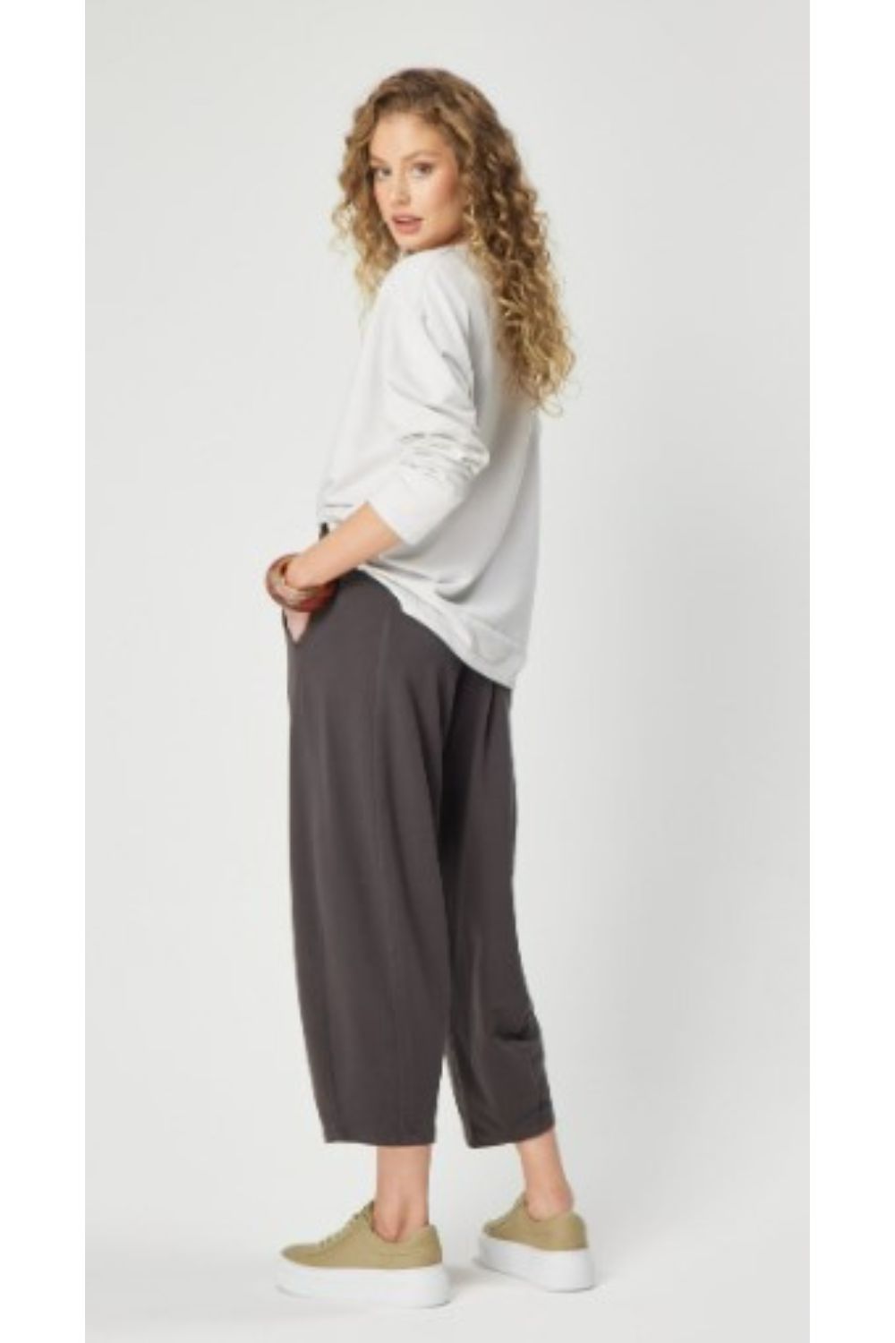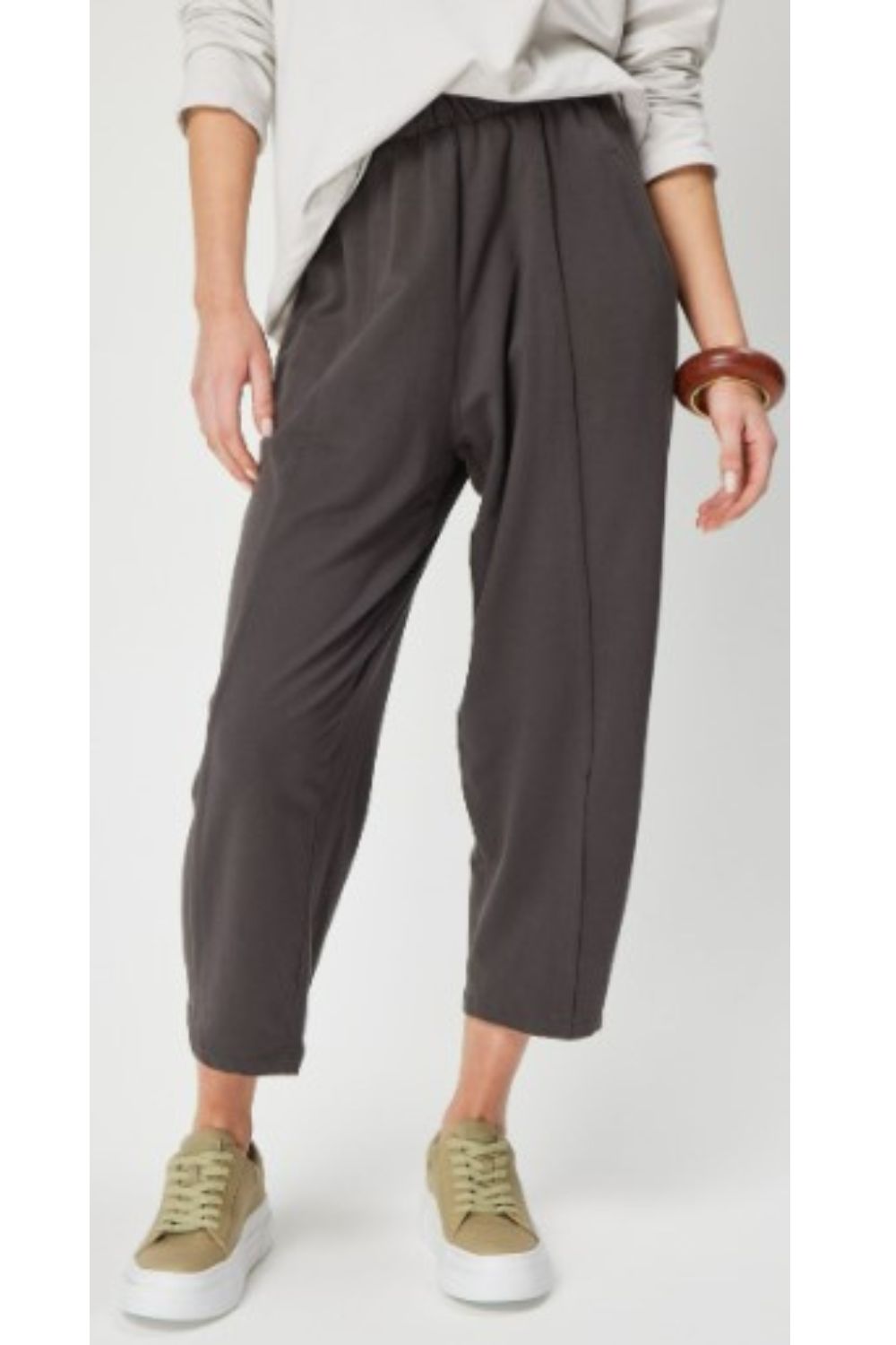 Settle in for a night of relaxation with Valia's Lounge Pant! Crafted from light and stretchy t-shirt fabric with an elastic waist and hidden pockets, these comfy pants will keep you cozy while you chill. The 7/8 length and tapered hems create a flattering silhouette, while the wide legs provide you with plenty of room to move. Unwind in style!