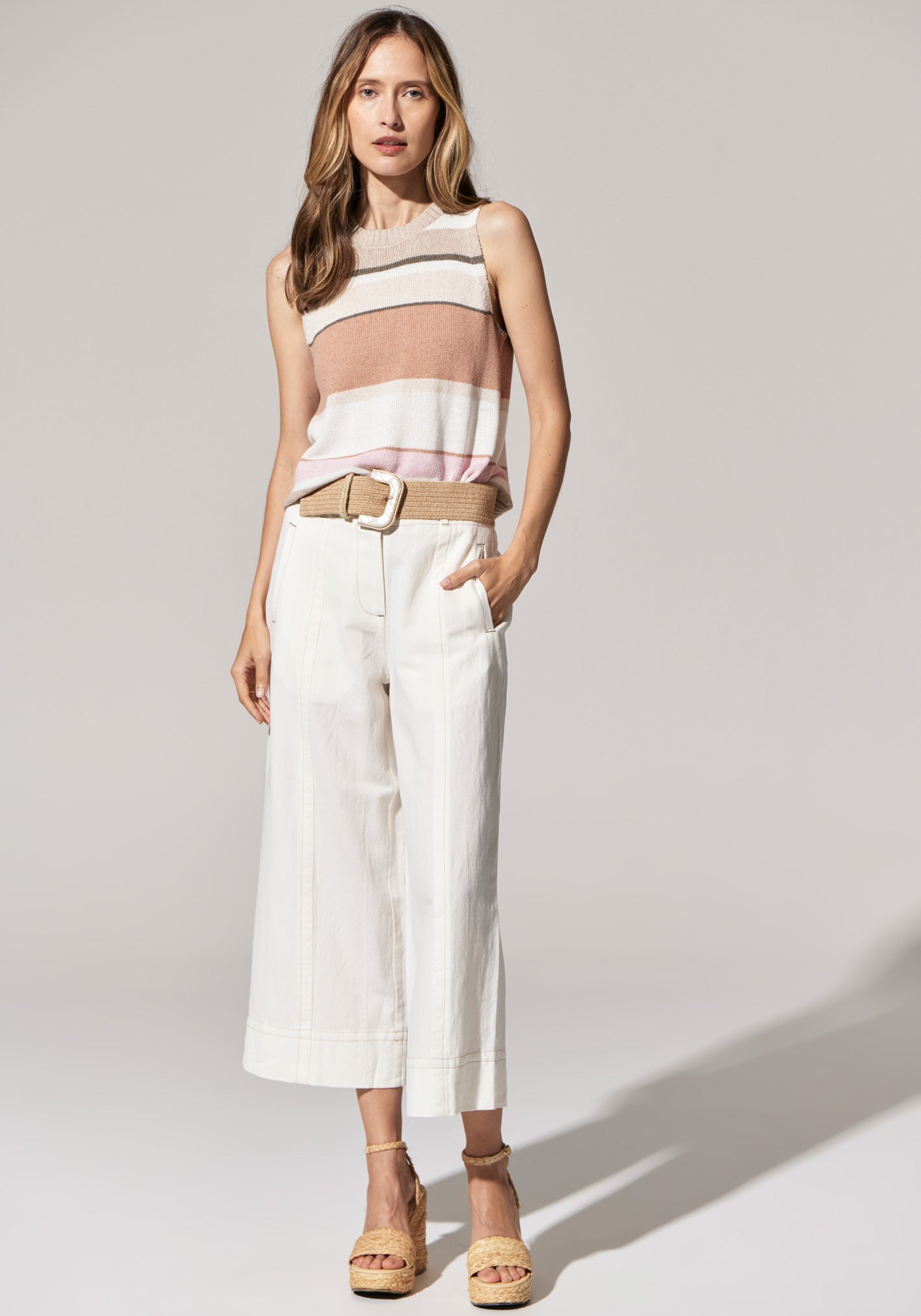 We love how a knitted tank is the perfect elevated basic, and this season we've developed a gorgeous new striped version. The Estel Knit Tank features two tonal striped colourways that matches back perfectly with our collection.