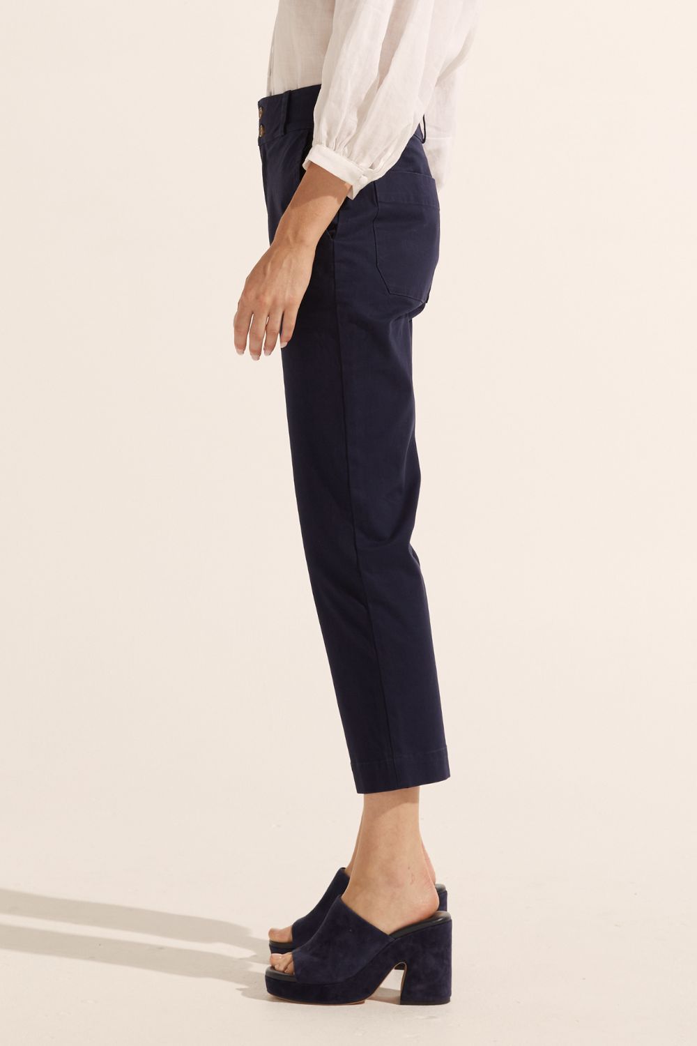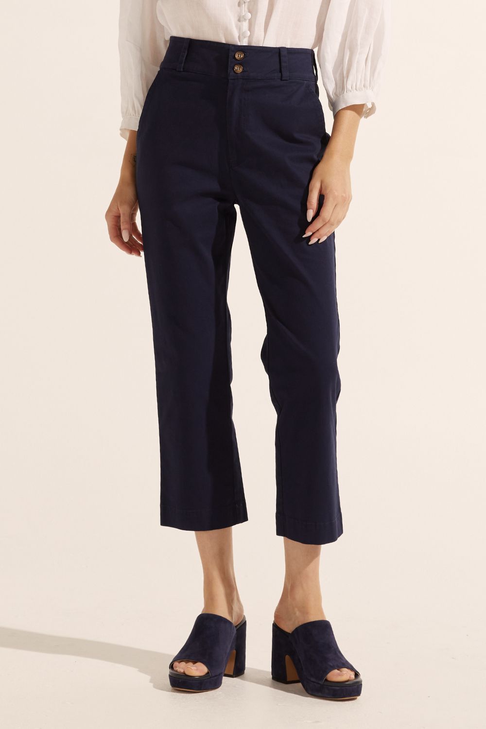 parisian ease and versatility run through the forge's curved waist, double button closure and cropped length. a contemporary capri style pant for the modern woman. a stretch cotton blend ensures fit, comfort and wearability are maximised.