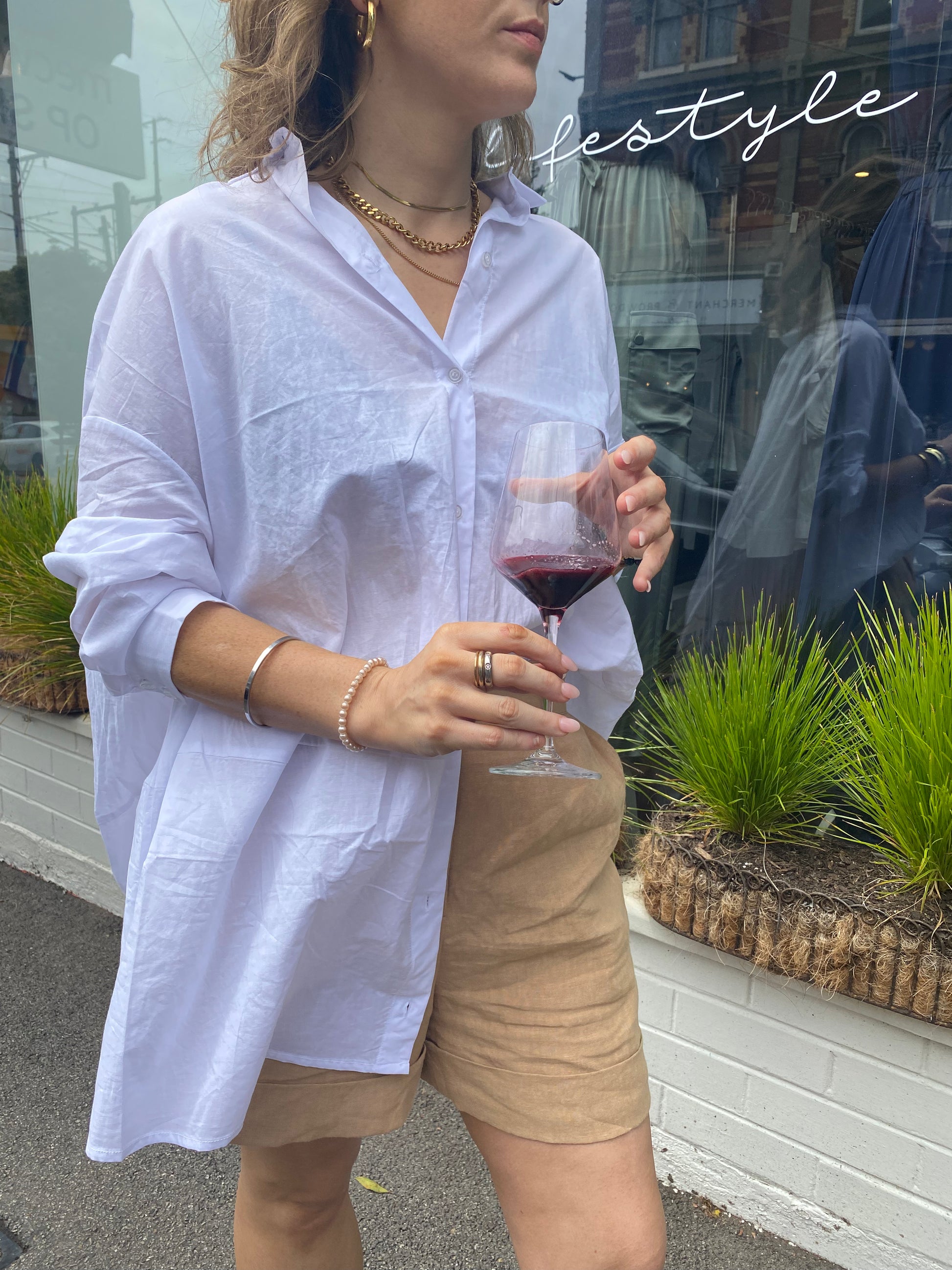 Indulge in luxurious comfort with the Gabi Oversized Shirt. Perfect for creating your own unique Summer looks, this shirt is designed with a classic shirt collar, button closure through the center front, and dropped armholes. The a-line silhouette makes it effortlessly chic, while the 100% cotton construction ensures superior comfort. The striped colourway adds a pop of playfulness to your style.