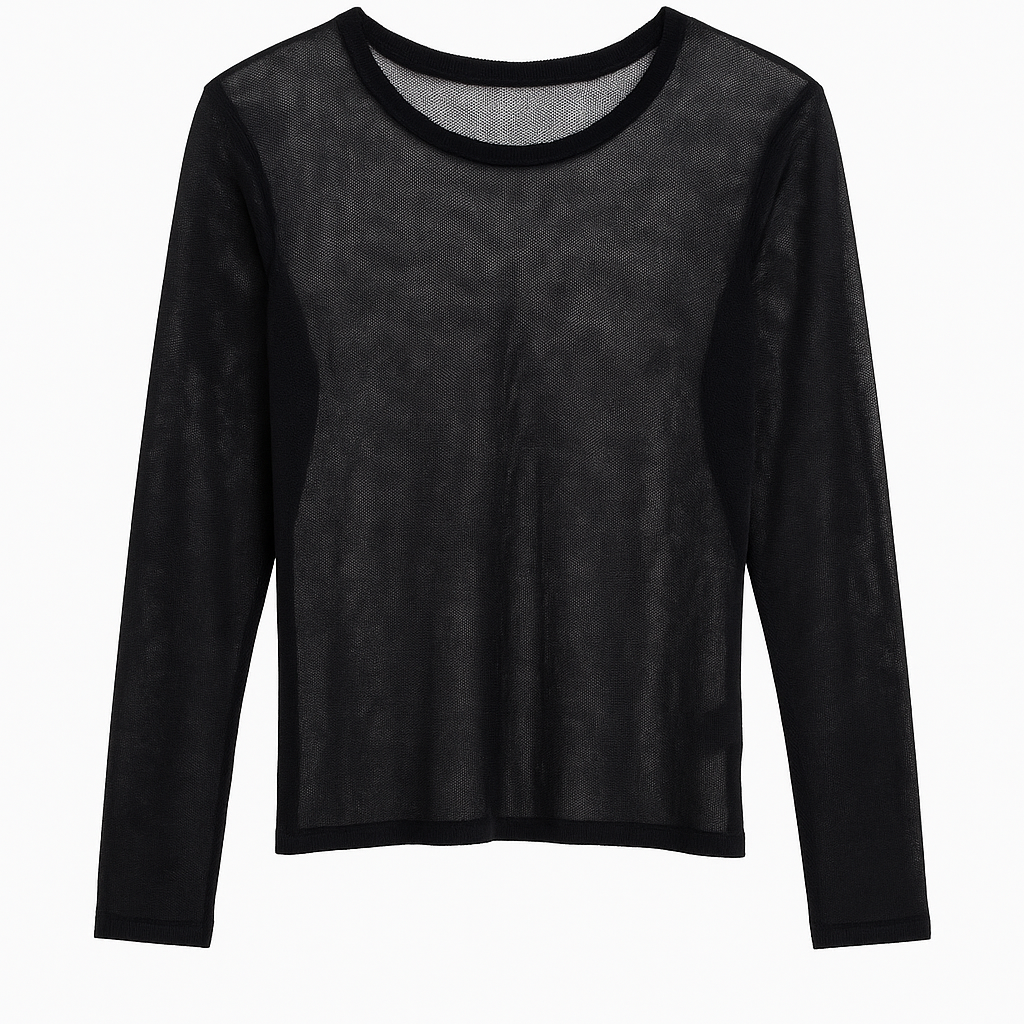 A refined essential in two timeless shades. The MAUD Dainty sheer knit top is designed as the ultimate layering staple—lightweight, breathable, and effortlessly sleek. With a semi-sheer finish and slim silhouette, it adds subtle polish under knits, dresses, or structured outerwear. Whether you choose classic black or clean white, this piece is the definition of elevated basics.