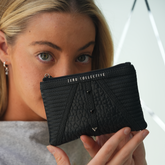 Light in hand, rich in detail. The ZEBU COLLECTIVE Leather Wallet Pouch is a modern essential designed for effortless days and minimal carry. Crafted from premium full grain genuine leather, its artful blend of textures and signature geometric detailing set it apart from the ordinary.