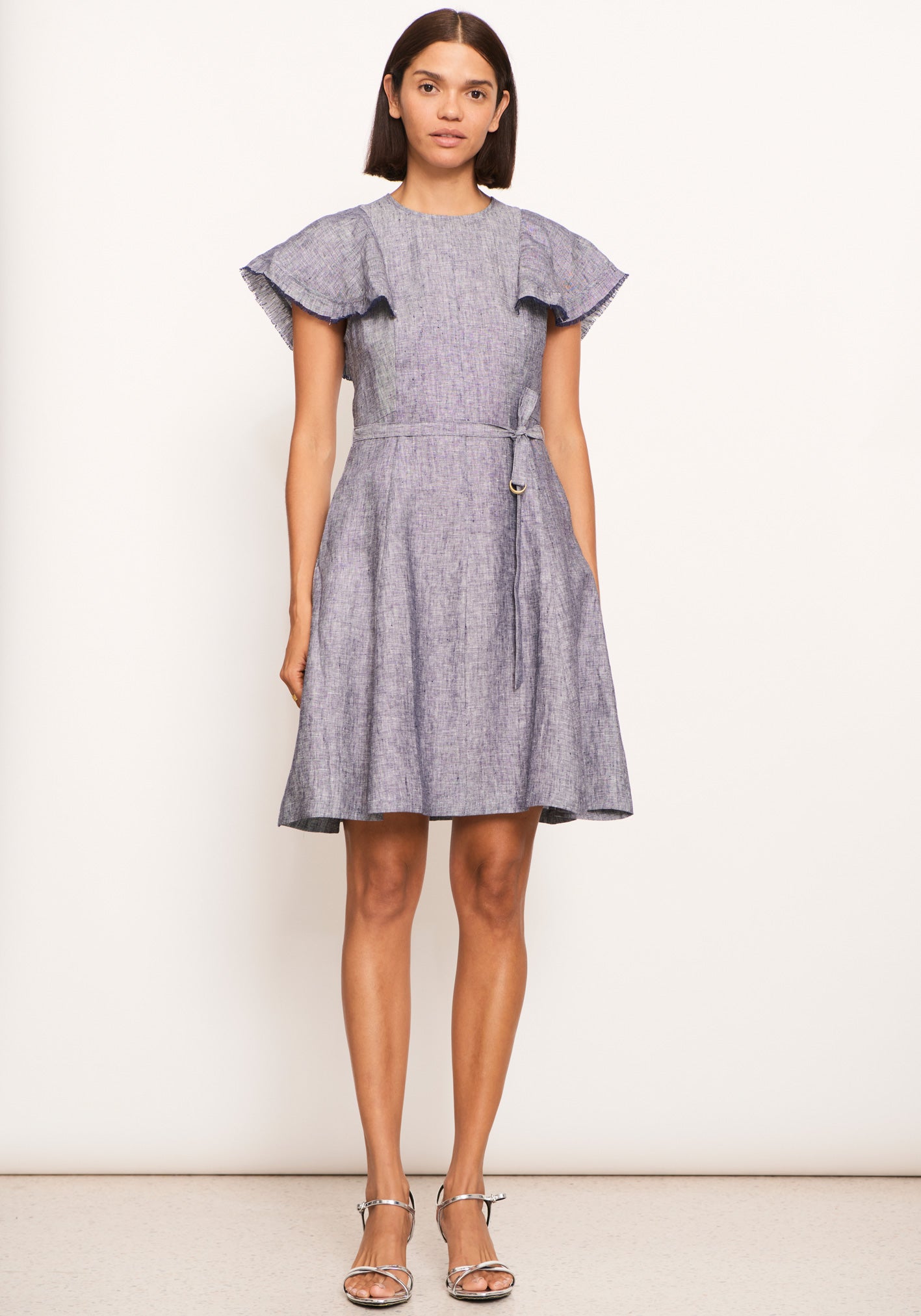 Based off Based off our bestselling Fringe Dress, the Joss Linen Denim Dress features a modern silhouette in pure linen.