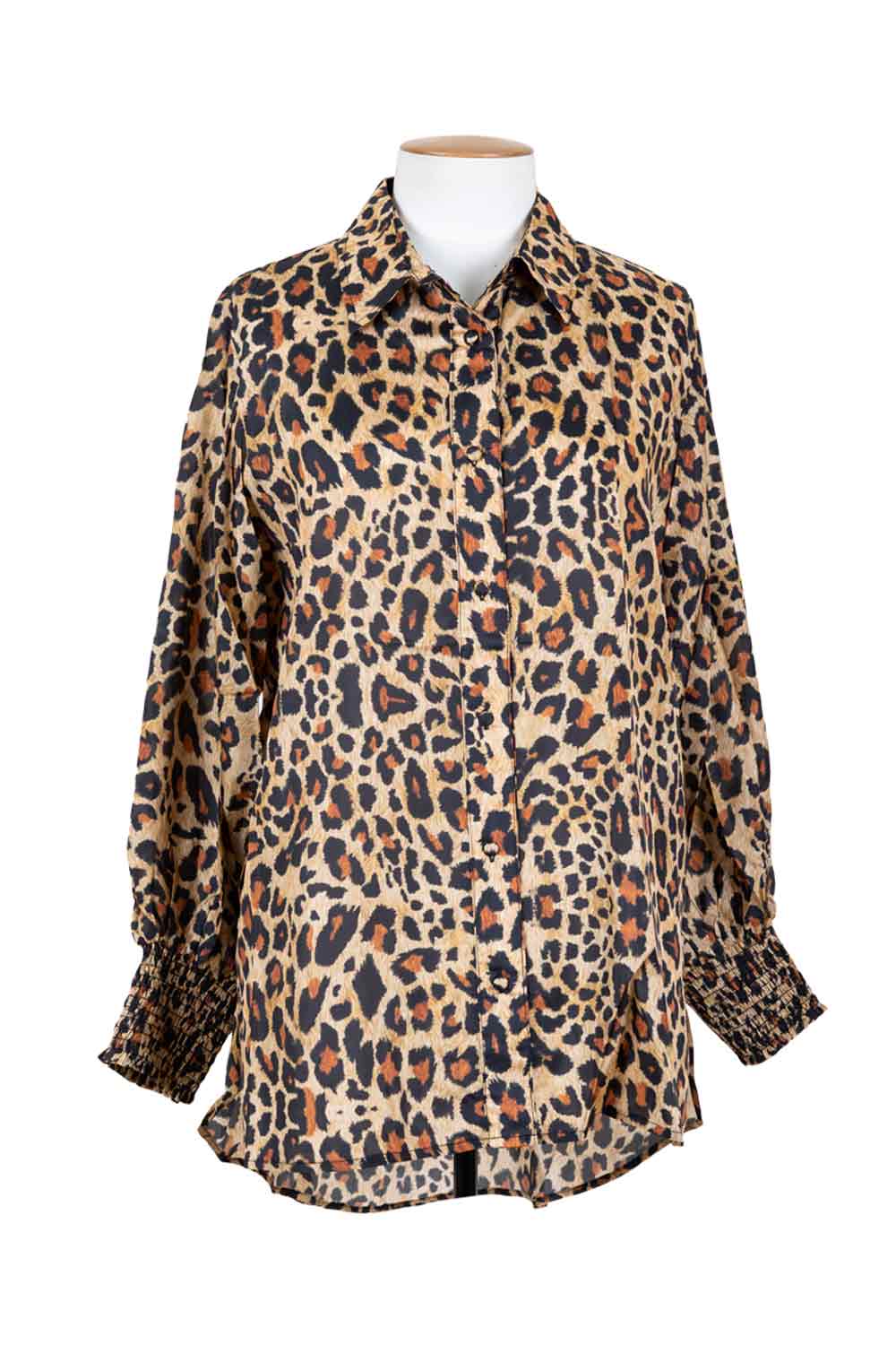 Indulge in the luxurious feel of Kamare's Hudson Blouse in the colourway Feline. Cut from 100% printed silk and featuring elasticated cuffs and a hi-lo hem, this stylish blouse offers endless styling options. Enjoy the sophisticated feel of silk skin print fabric and the versatility of having a relaxed fit, covered buttons and versatile styling. A perfect blend of elegance and edginess.