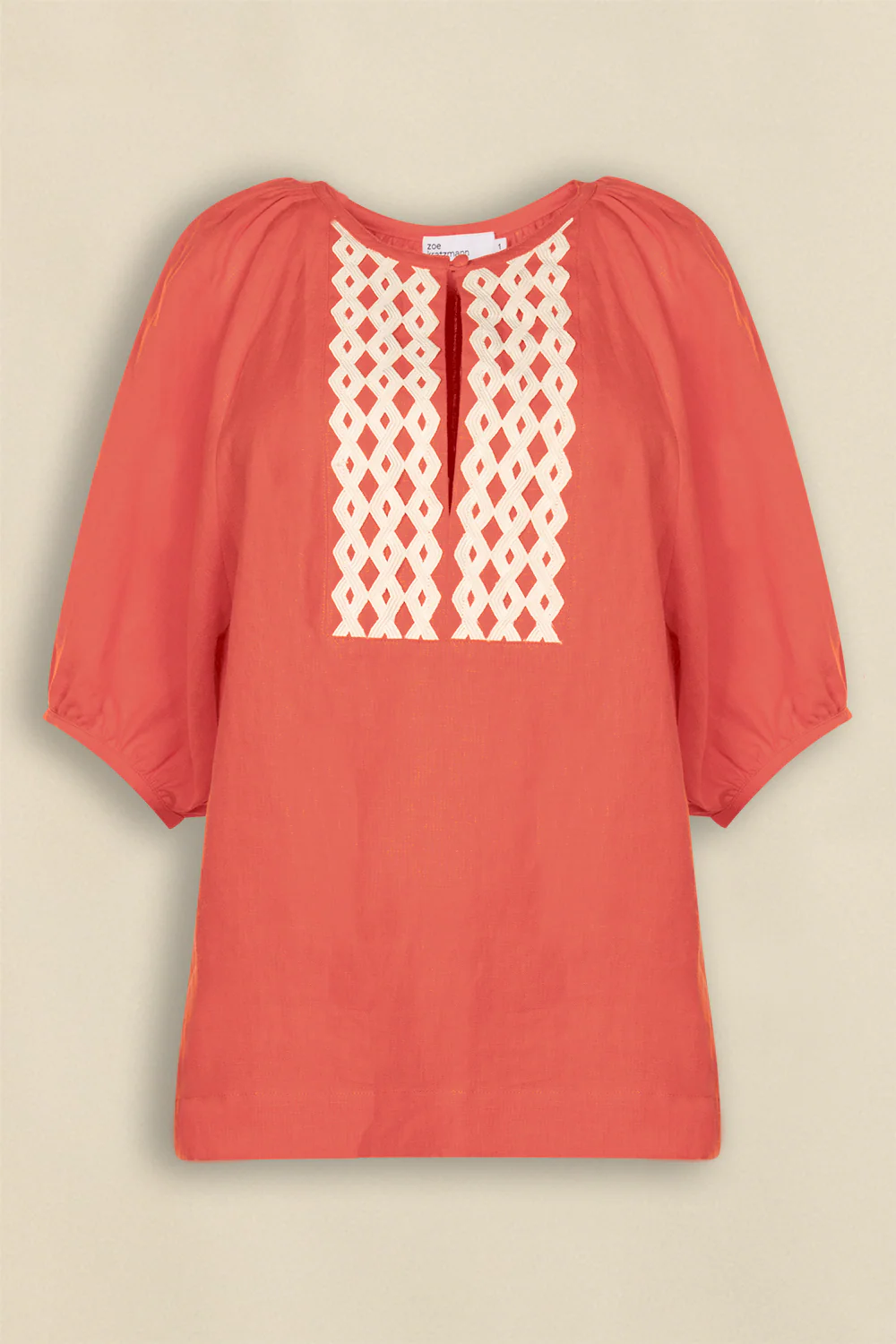 Lace detailing and soft gathers add textural interest to the versatile silhouette of the Kilter Top.