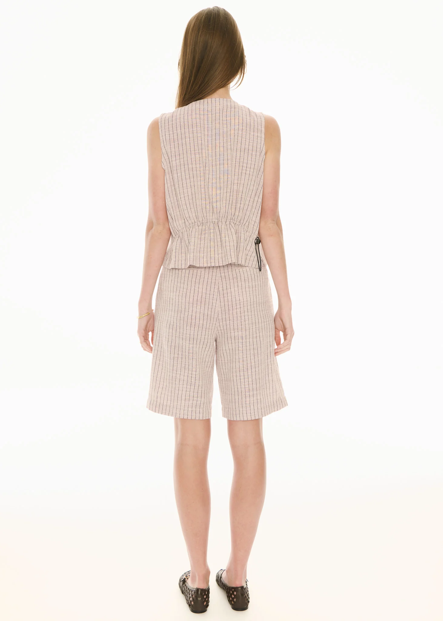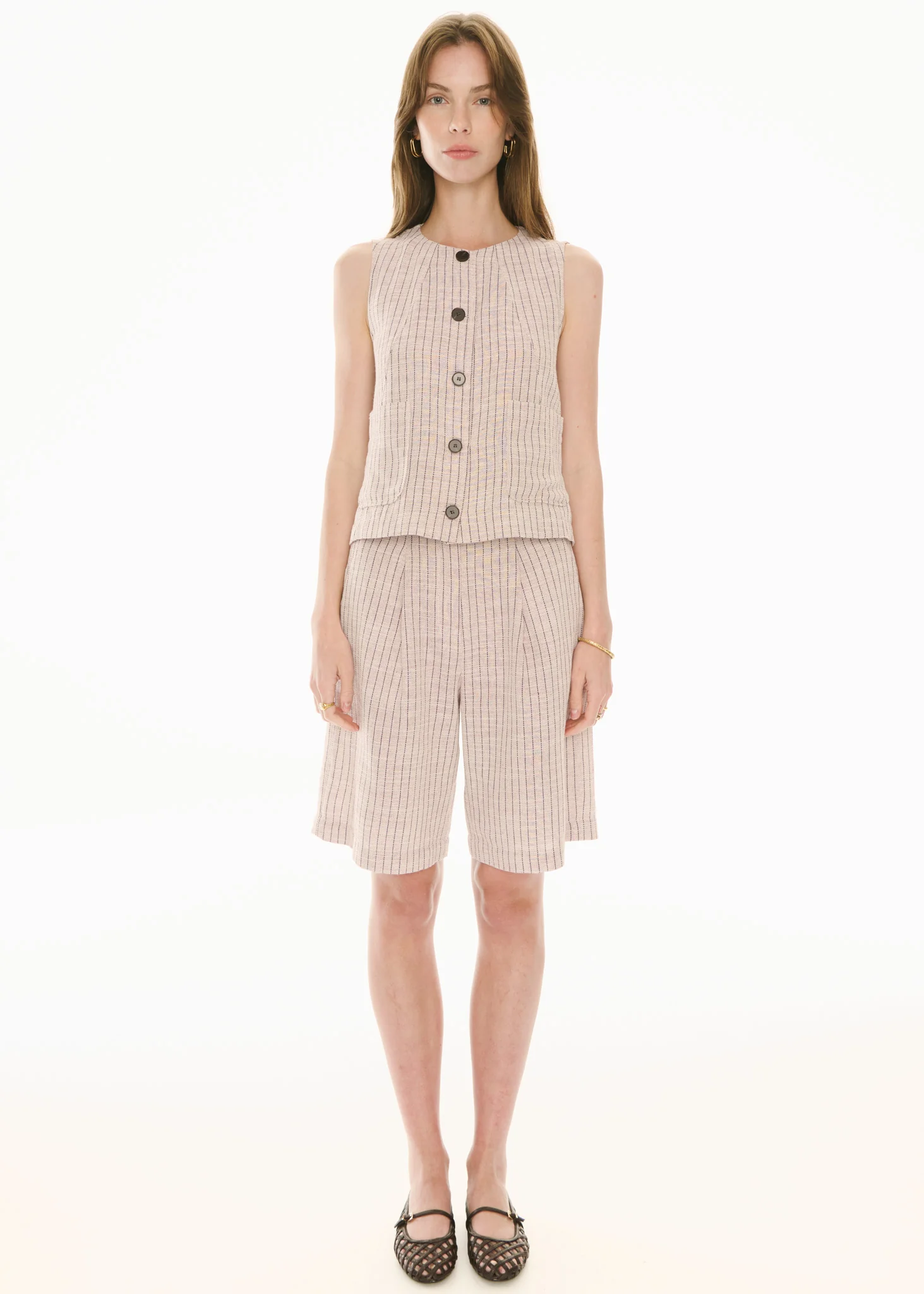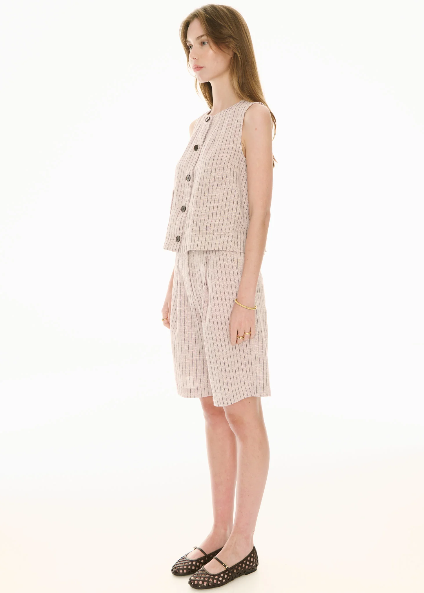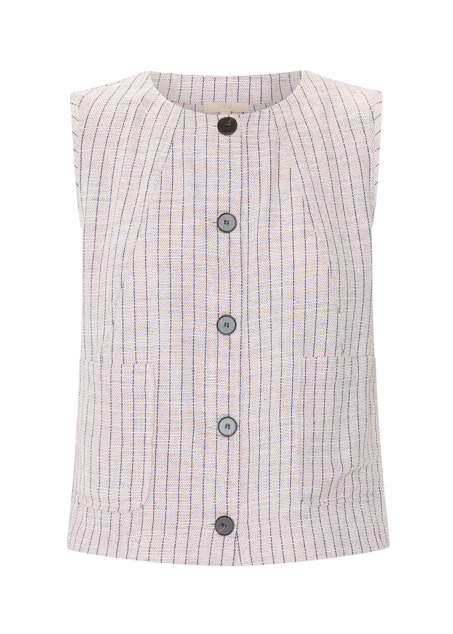 Made from a textured linen cotton blend with a contrast stripe, the Maya Vest is Summer suiting at its best.
