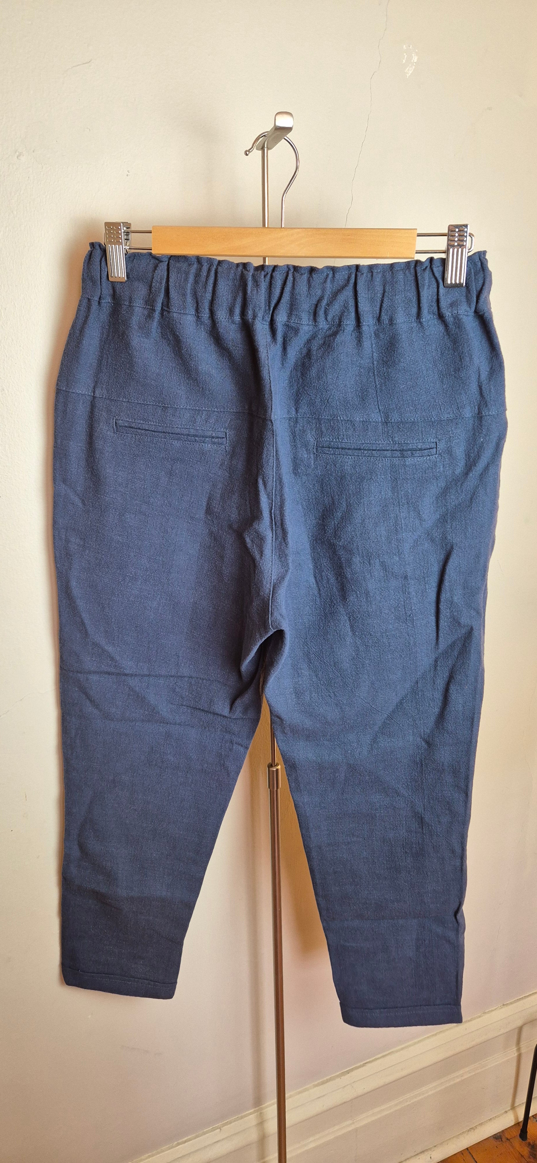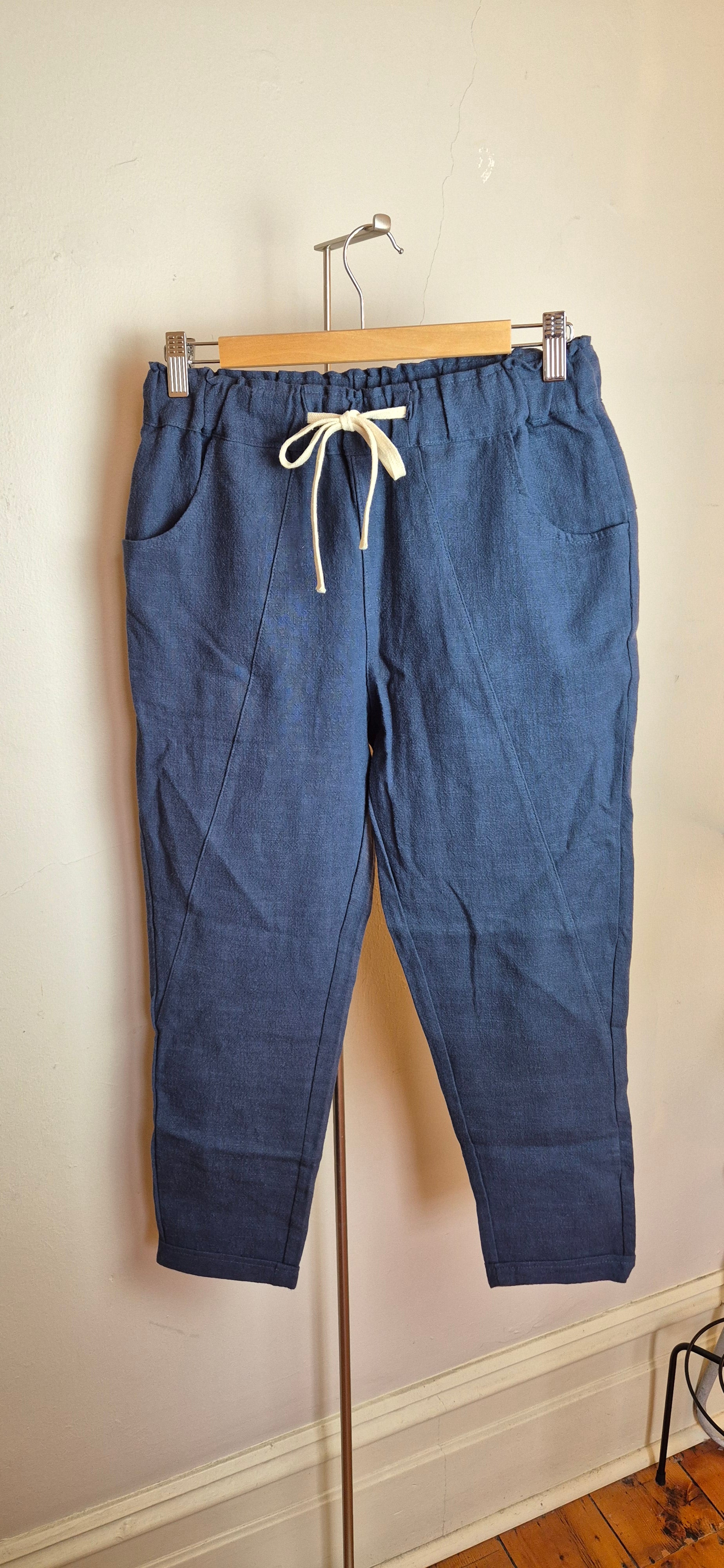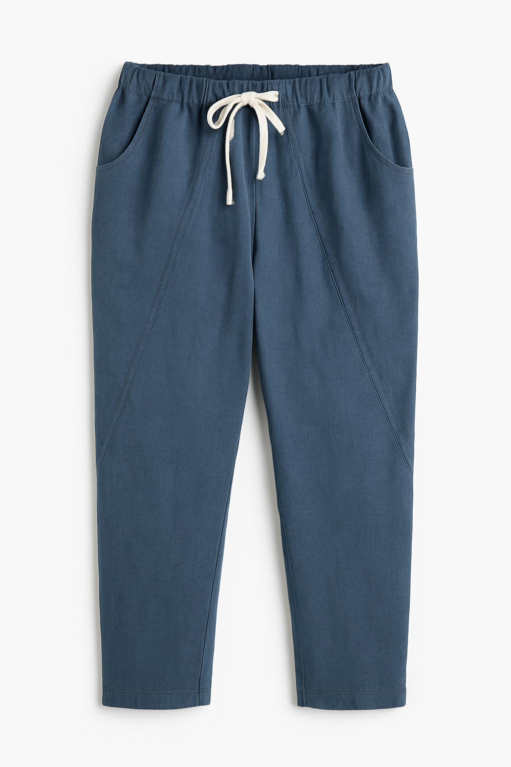 Easygoing and endlessly wearable, these lightweight linen-blend pants in a soft French blue offer everyday comfort with style. Featuring a relaxed tapered leg, natural cream drawstring, angled seam detailing, and roomy side pockets, they’re made for slow mornings, market runs, or casual layering. The breathable fabric makes them ideal for transeasonal dressing.