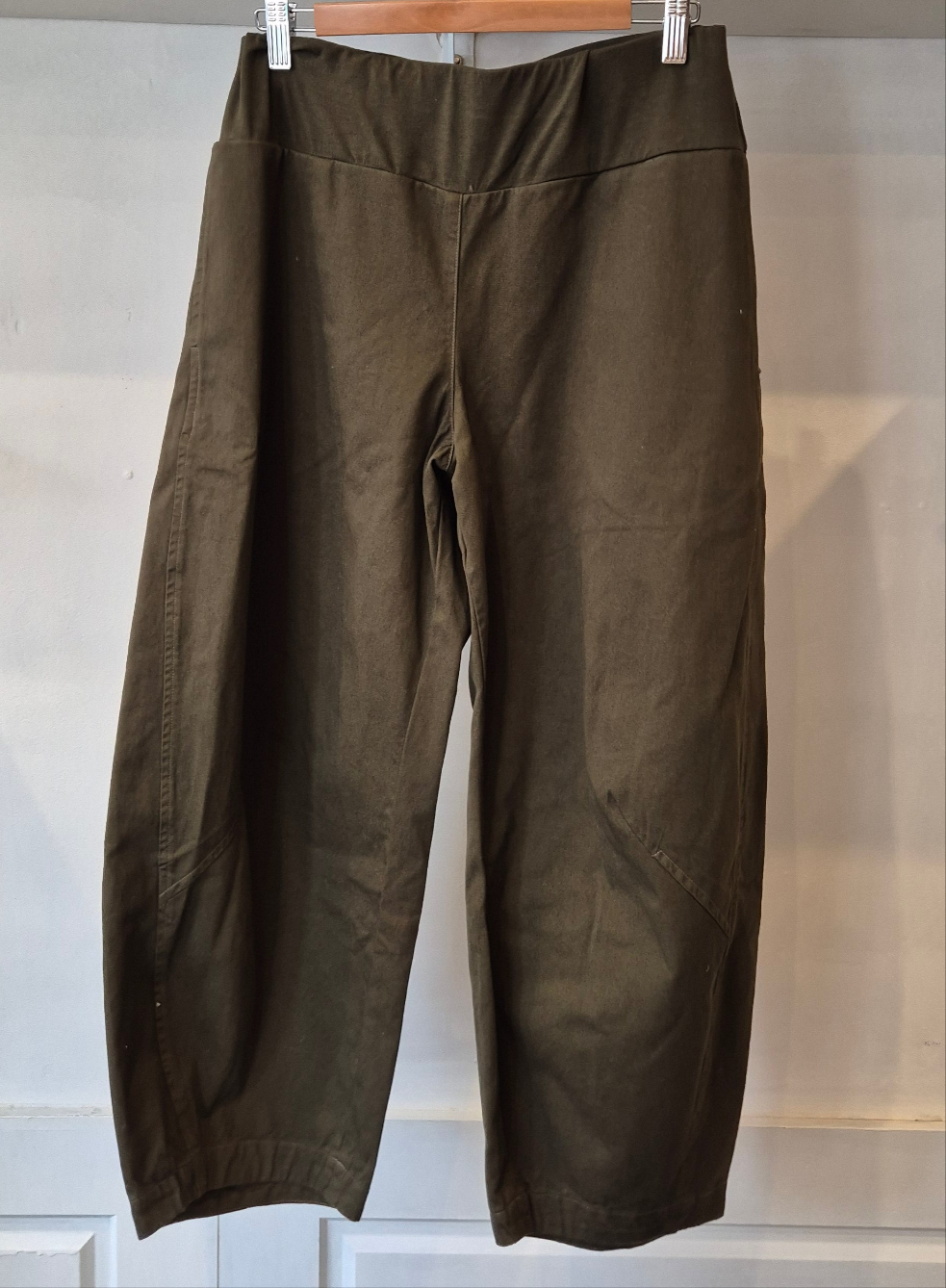 A beautifully structured barrel-leg pant by VALIA, proudly made in Australia. Featuring a soft stretch waistband and subtle seam detailing, these pants are cut with a sculptural silhouette that curves gently through the leg before tapering at the ankle—creating a modern, flattering shape without compromising on comfort.