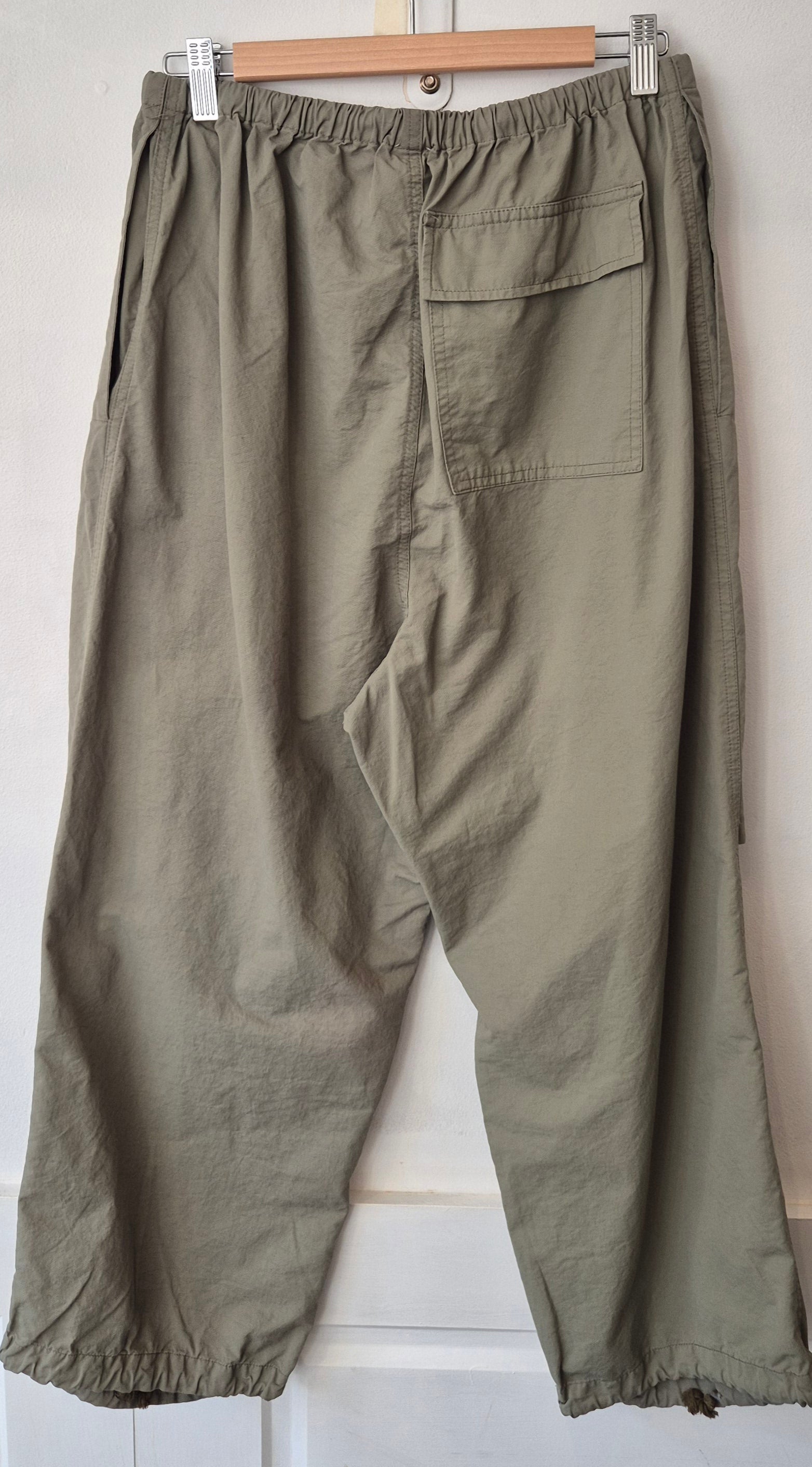 Relaxed yet polished, these M.A. Dainty cargo pants are the ultimate versatile addition to your wardrobe. Crafted in a lightweight olive fabric, they feature an elastic waistband with a drawstring and eyelet detail for an adjustable fit. The wide-leg silhouette is slightly tapered at the hem with a functional drawstring, allowing you to adjust the shape for a casual or cinched look. Side pockets add practicality, while the subtle texture and neutral hue make these an effortless match for a variety of tops and shoes.