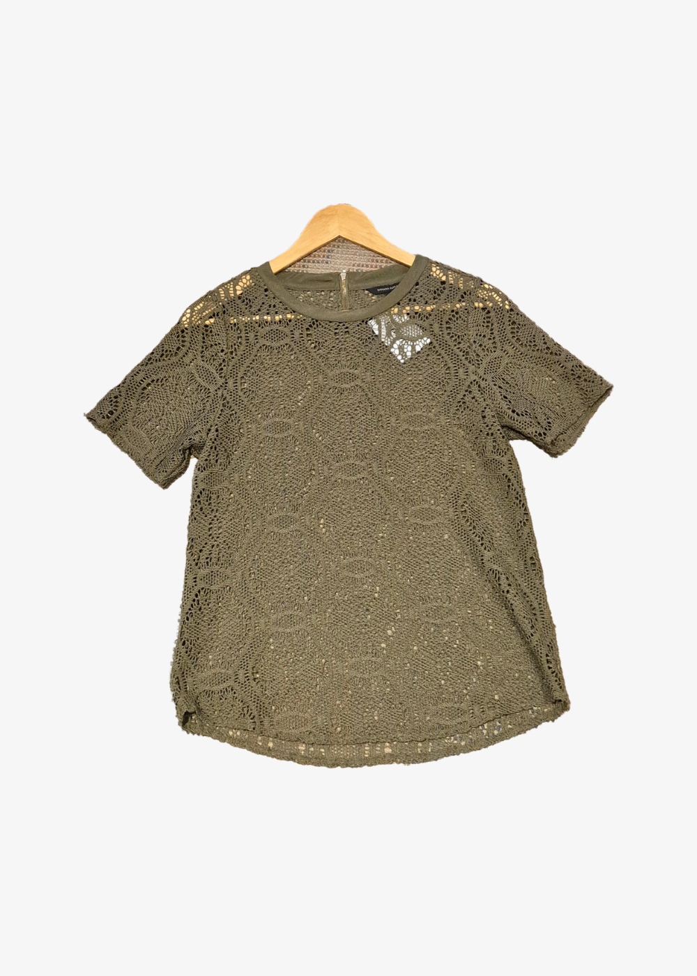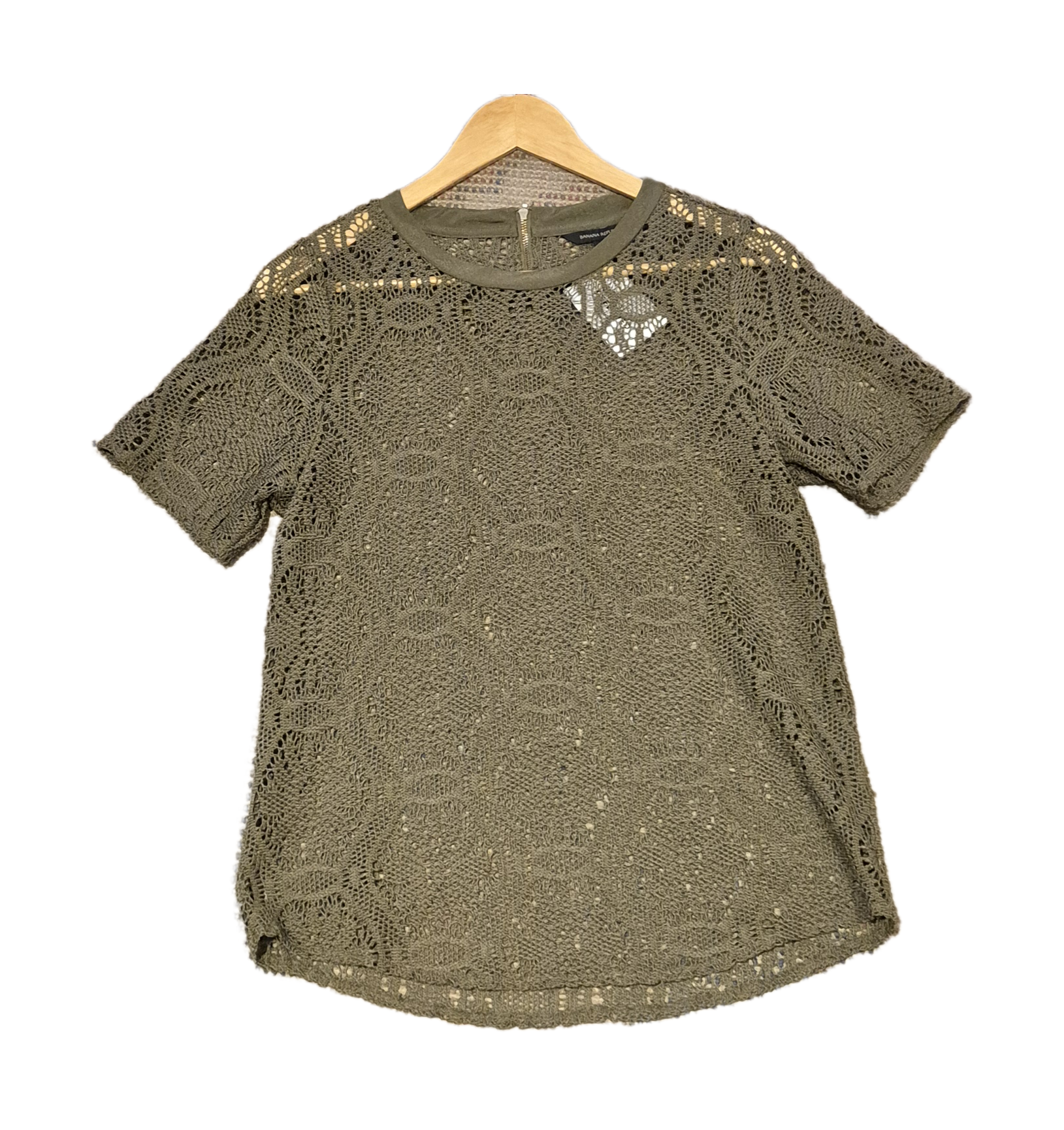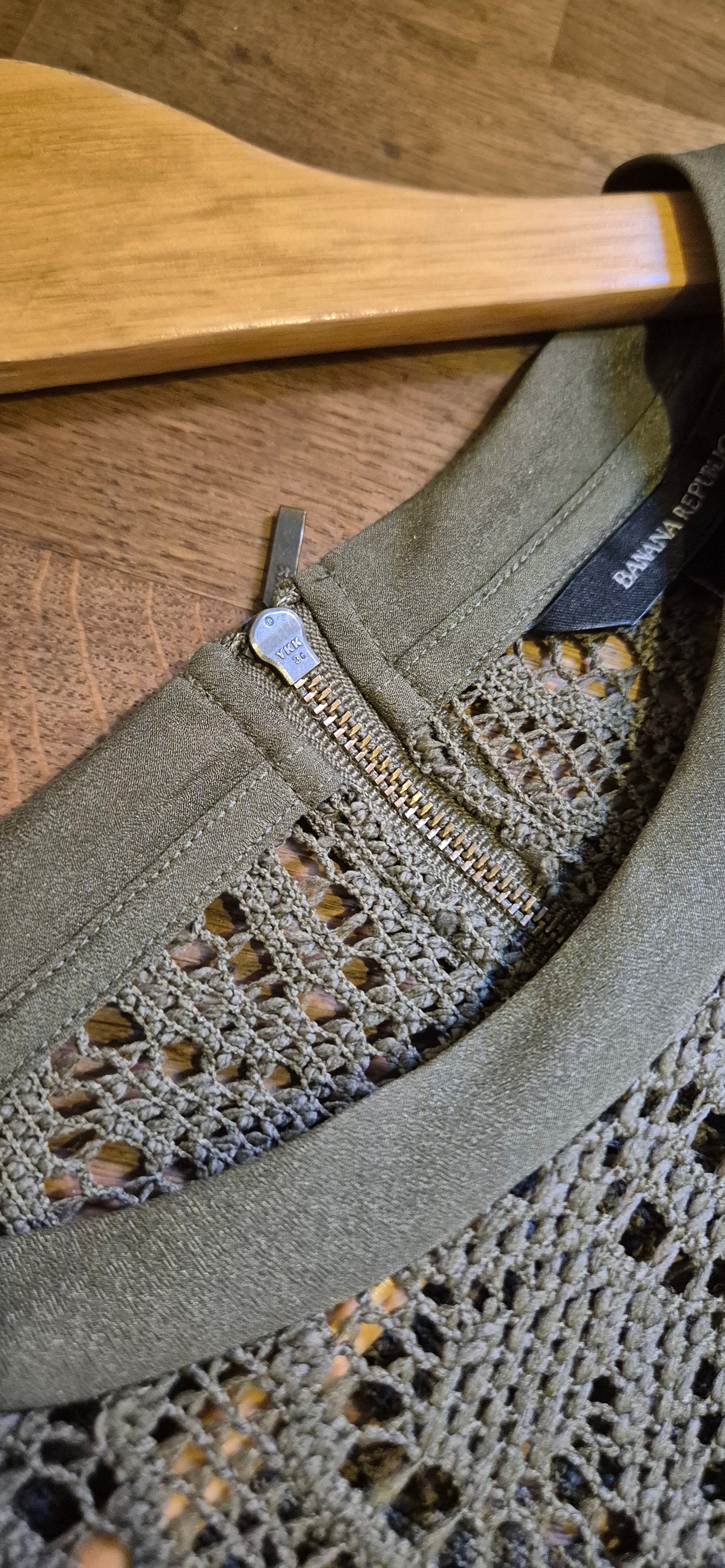 This elegant olive crochet lace top by Banana Republic is the perfect blend of sophistication and versatility. The intricate lace design and neutral tone create a timeless look that transitions seamlessly from casual outings to evening events. The back zipper closure adds a modern touch to this beautifully detailed piece.