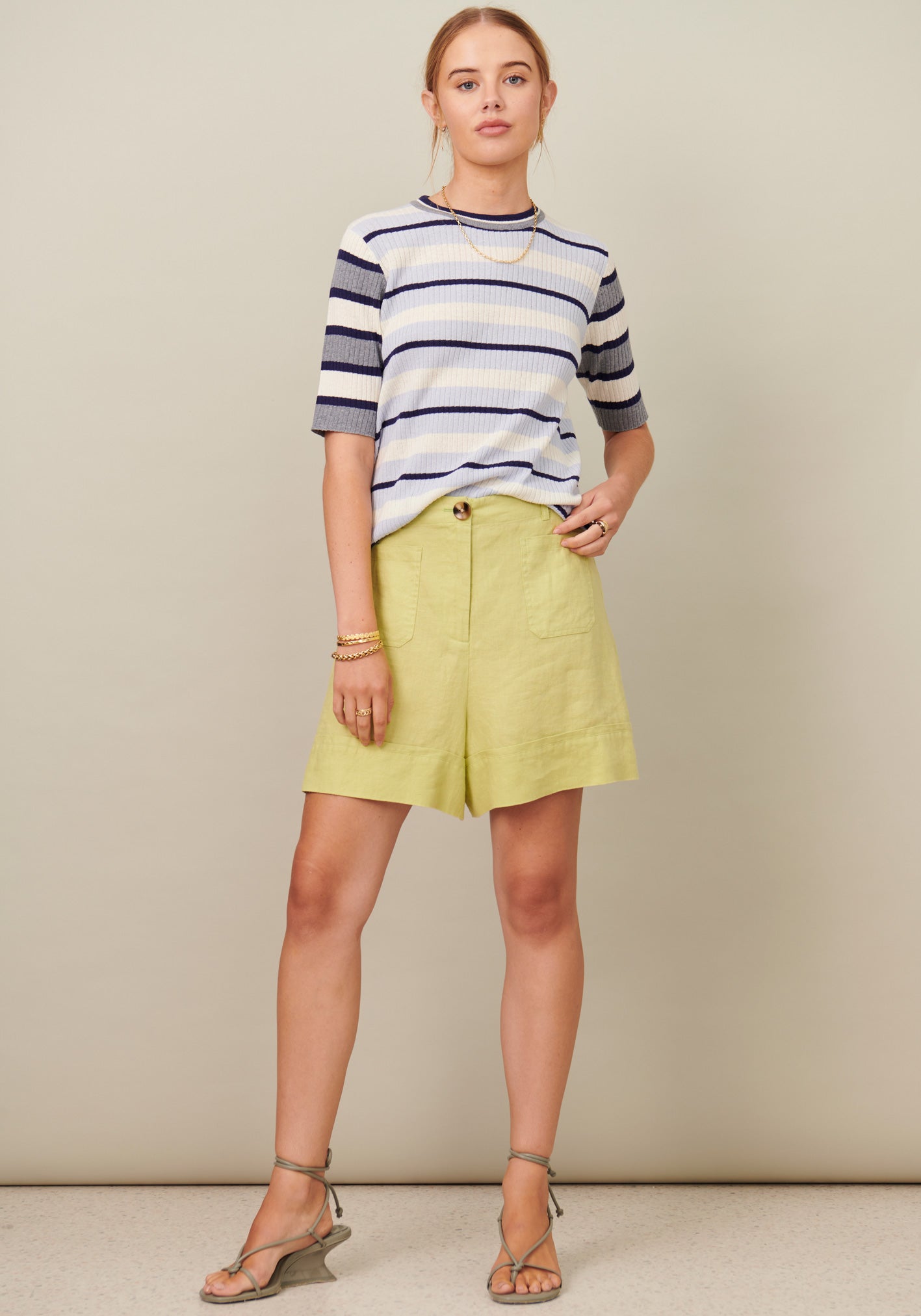 Go for an effortless summer vibe with the POL Claudia Tee in Sky Stripe. Crafted from a lightweight fabric with a classic stripe pattern, you'll get all-day comfort and style. Plus, the relaxed silhouette and premium cut make it an easy choice for any casual occasion.