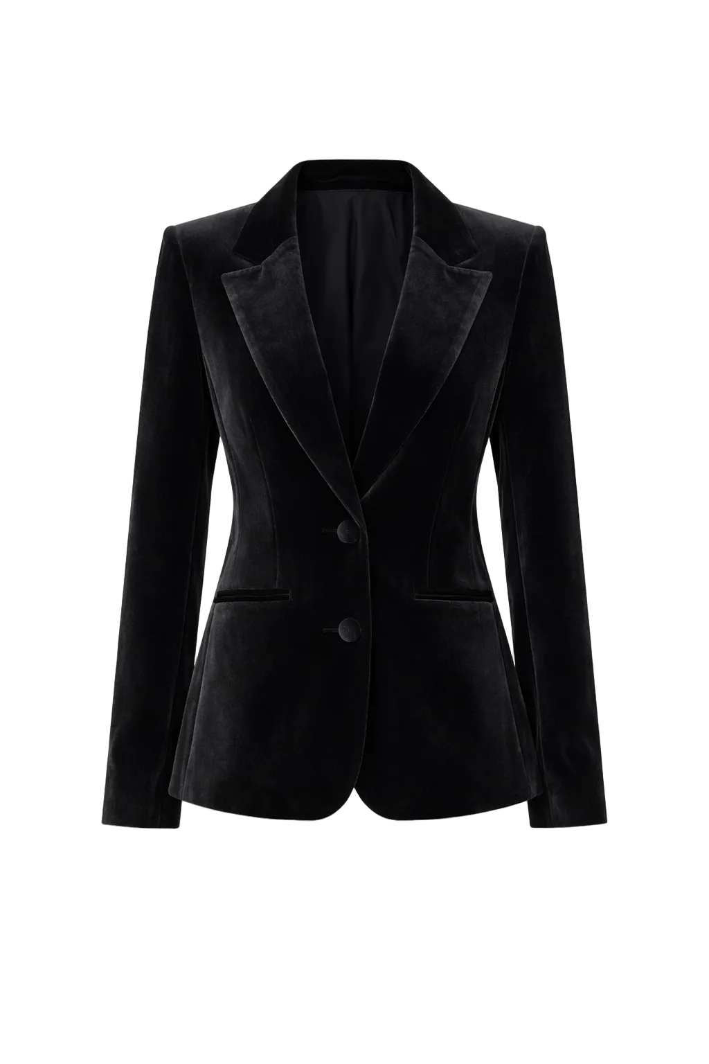 This jacket is a true wardrobe investment — elegant, versatile, and designed to work effortlessly across occasions. The plush velvet adds depth and richness, while the classic lapel, clean lines, and subtle stretch make it both polished and comfortable. Functional pockets and thoughtful detailing ensure it supports real-life dressing while still feeling special.