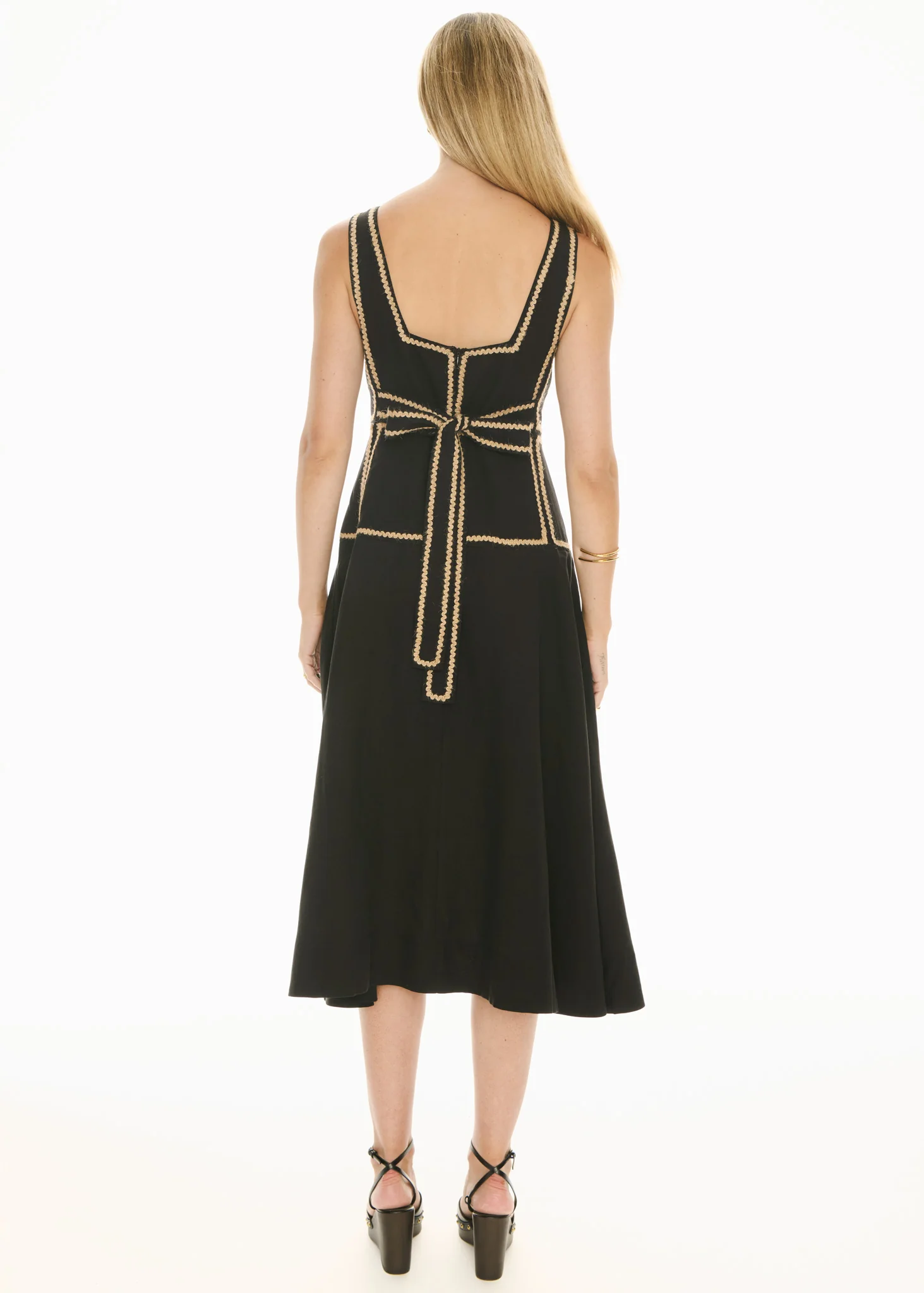 Featuring a square neckline and Raffia trim detailing throughout, the Marlin Raffia Dress is perfect for all of your Summer occasions!