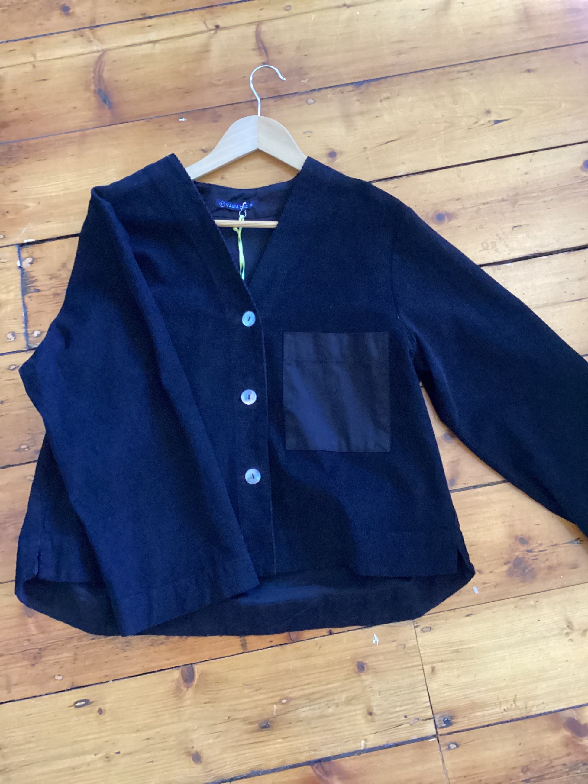 Proudly made in Melbourne, this jacket from Valia the Label combines timeless tailoring with modern detailing. Crafted from soft cotton in a subtle black check fabric, it features a button-down front with four contrasting buttons, long sleeves, and a structured V-neckline. A plain black denim chest pocket adds a contemporary edge, while delicate pleat detailing at the rear lends movement and ease of fit. Both versatile and refined, this jacket transitions seamlessly from casual wear to polished layering.